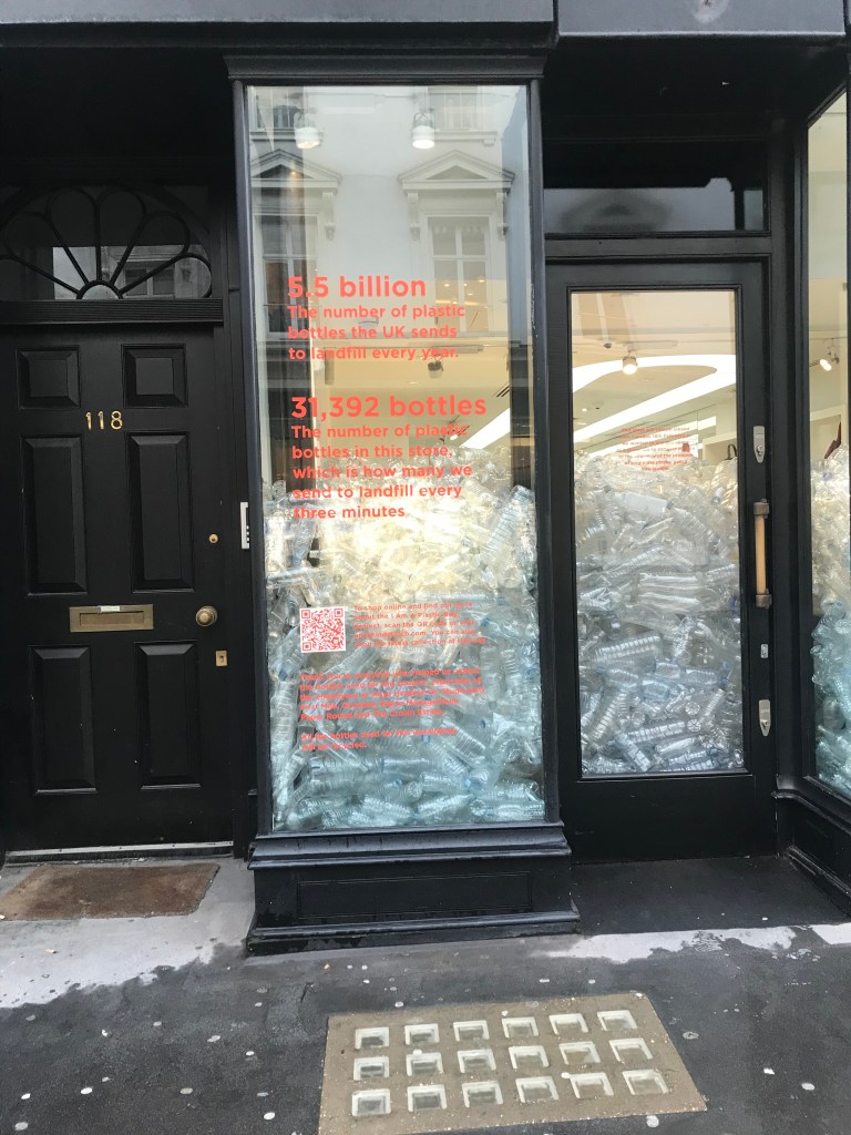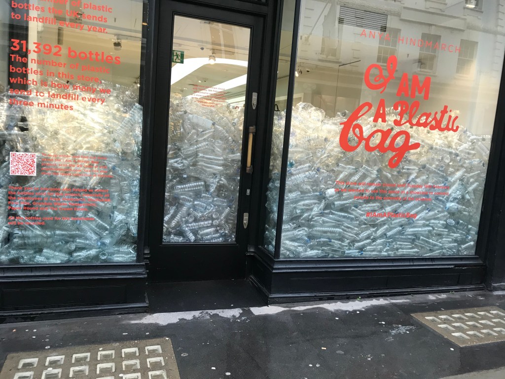For fashion week this company closed to show something that is huge. Anya Hindmarch closed its doors to show how how much plastic we are really using. This company took what is happening in the world with global warming and sustainability and they choose to show people what is really happening but not with a fashion show to show how their clothes are sustainable, but they choose to show the real problem. This is what they did for fashion week they made a real statement. In their words “This store will stay closed until Tuesday 18th February as we wanted to use this space as a showcase to connect people to the enormity of the problem. #I am a plastic bag”